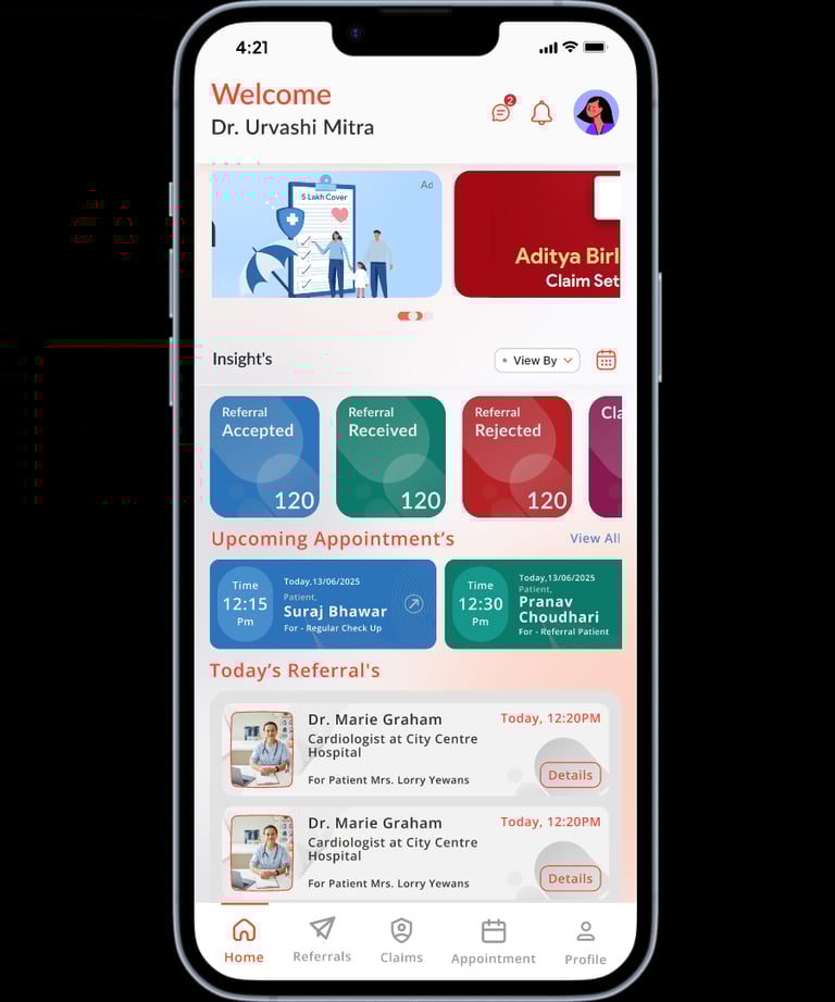 Insurance Network: Establish your presence in the Insurance network, and respond to claim queries on the App. Insured patients and Provider Network prefer doctor who have track record of performance on the Aaruexx Network.